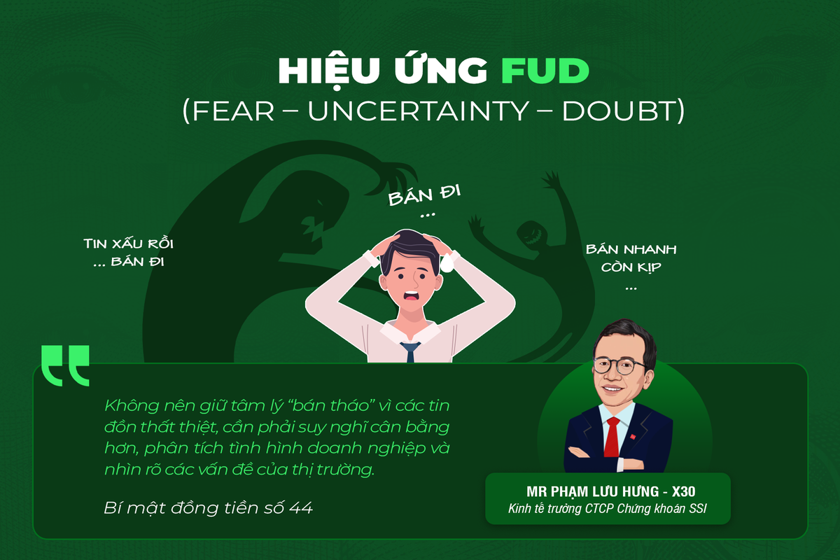 Hay khán giả cũng được tìm hiểu thêm về F.U.D nỗi ám ảnh cho danh mục nhà đầu tư mỗi thị trường biến động. Vẫn là câu chuyện nhìn nhận mọi thứ không đúng với bản chất, nhưng khác với hiệu ứng hào quang chỉ cho nhà đầu tư những lời hứa hẹn, hiệu ứng FUD reo rắc lời đồn và sự hoài nghi vào mỗi nhà đầu tư, khiến nhiều người bán đi những khoản đầu tư tốt và gây hiệu ứng bán tháo trên thị trường.