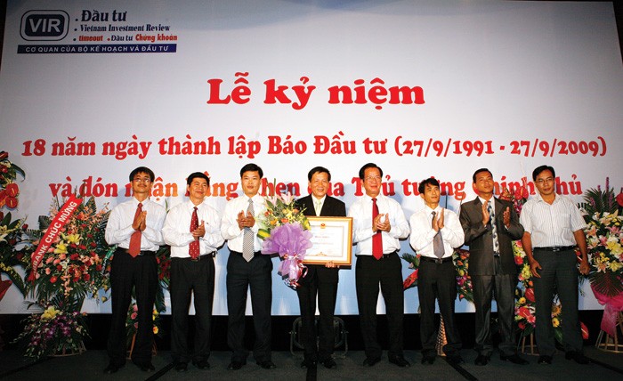 Tập thể lãnh đạo Báo Đầu tư đón nhận Bằng khen của Thủ tướng Chính phủ (tháng 9/2009)