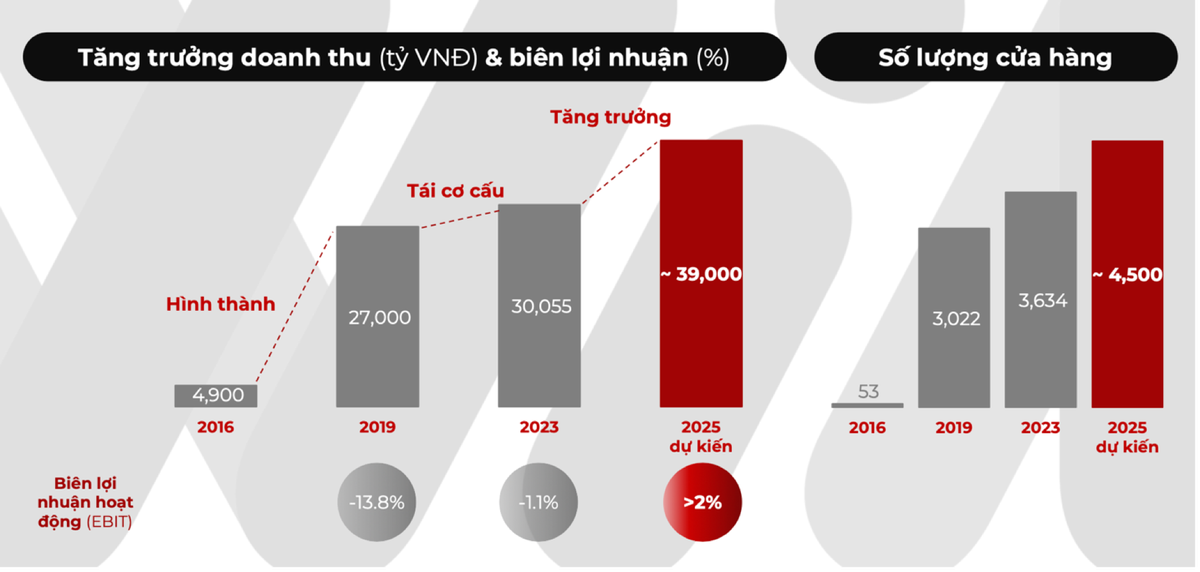 Biên lợi nhuận hoạt động được cải thiện đáng kể: từ mức âm 13,8% năm 2019 lên âm 1,1% năm 2023, và kỳ vọng đạt trên 2% trong năm 2025. Mỗi ngày, hệ thống WinMart phục vụ gần 1,5 triệu lượt khách, tương ứng khoảng 1,5% dân số. Đến cuối năm, theo kế hoạch, WinCommerce sẽ chạm mốc 4.500 cửa hàng.