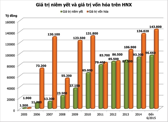 Thanh khoản thị trường cũng tăng hàng trăm lần, từ 3,7 tỷ đồng/phiên trong thời kỳ đầu, năm 2014 giá trị giao dịch bình quân đạt 807,8 tỷ đồng/phiên. 10 năm qua, HNX đã giúp các doanh nghiệp niêm yết huy động hơn 58.787 tỷ đồng vốn cho đầu tư, sản xuất - kinh doanh.