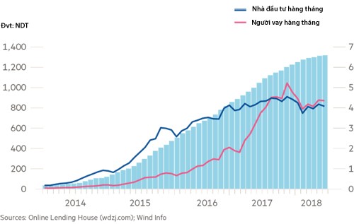 Lĩnh vực cho vay ngang hàng tại Trung Quốc giai đoạn 2014 - 2018. Ảnh: FT