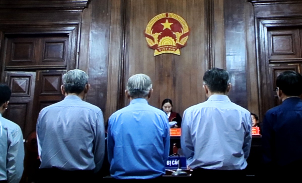 Các bị cáo bị áp giải sau khi tòa tuyên án, lối vào nhà giam.