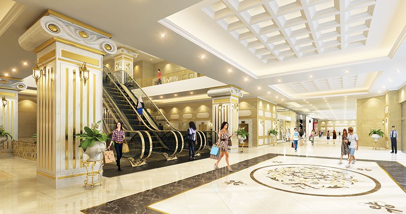 Bên cạnh đó, chính thiết kế kiến trúc đã nói lên đẳng cấp chủ nhân. Tổ hợp được thiết kế theo phong cách kiến trúc Tân Cổ Điển, với toàn bộ mặt ngoài được ốp đá granite giống như áo hoàng bào bằng đá hoa cương, tạo nên vẻ đẹp sang trọng và trường tồn.