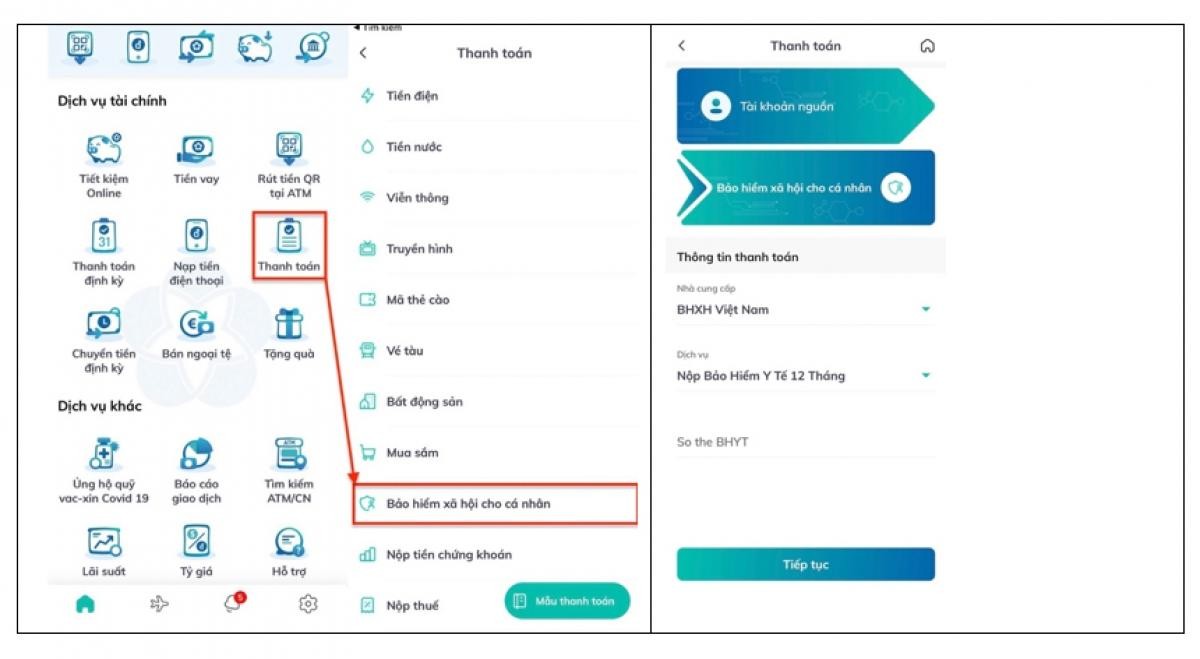 Đã có thể đóng bảo hiểm xã hội tự nguyện, gia hạn thẻ bảo hiểm y tế thông qua ứng dụng ngân hàng