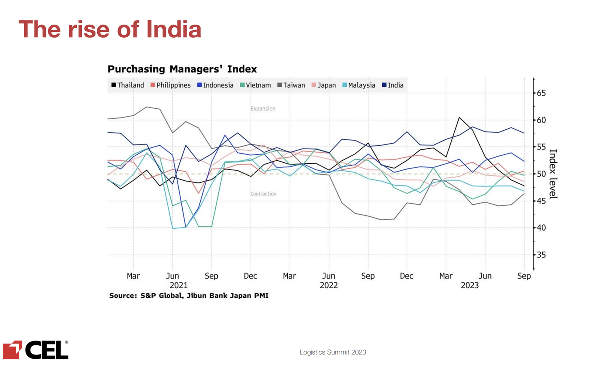 Nhìn vào chỉ số PMI cho thấy mức độ thu hút mỗi quốc gia, Việt Nam có chút khó khăn trong việc bắt kịp với các quốc gia khác, trong khi một số quốc gia không đáp ứng được nhu cầu vì hạn chế năng lực, trong khi Ấn Độ rất quyết liệt thu hút FDI, thiết lập nhiều nhà máy, thu hút rất nhiều nhà sản xuất.