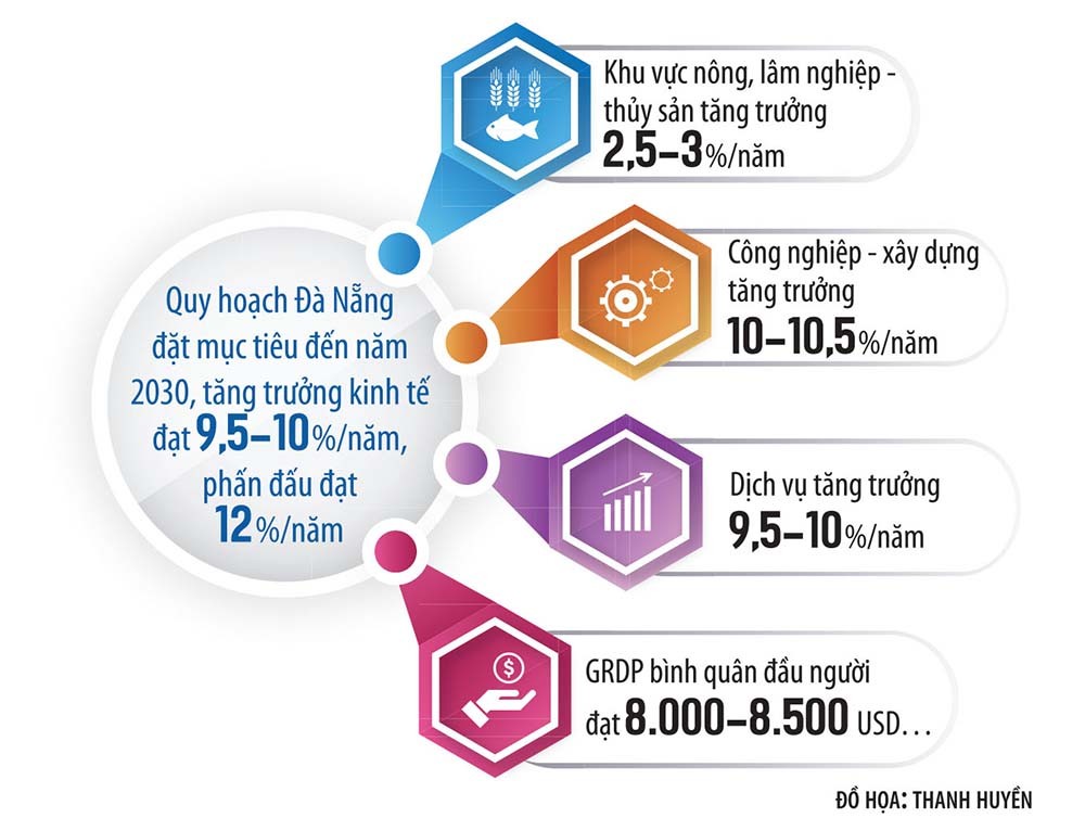 Không dừng lại ở đó, Đà Nẵng đã bước vào chặng đường phát triển mới, với mục tiêu cao hơn và xa hơn. Quy hoạch thời kỳ 2021 - 2030, tầm nhìn đến năm 2050 được Thủ tướng Chính phủ phê duyệt đã định hướng Đà Nẵng trở thành đô thị lớn, sinh thái, thông minh, bản sắc, bền vững, ngang tầm quốc tế, giữ vai trò là đầu mối kết nối và phát triển với mạng lưới đô thị khu vực và quốc tế; là trung tâm du lịch quốc tế gắn với trung tâm tổ chức sự kiện quốc tế; trung tâm công nghiệp công nghệ cao, công nghệ thông tin; trung tâm khởi nghiệp, đổi mới sáng tạo; trung tâm tài chính quốc tế quy mô khu vực và là thành phố biển đáng sống đạt đẳng cấp khu vực châu Á…