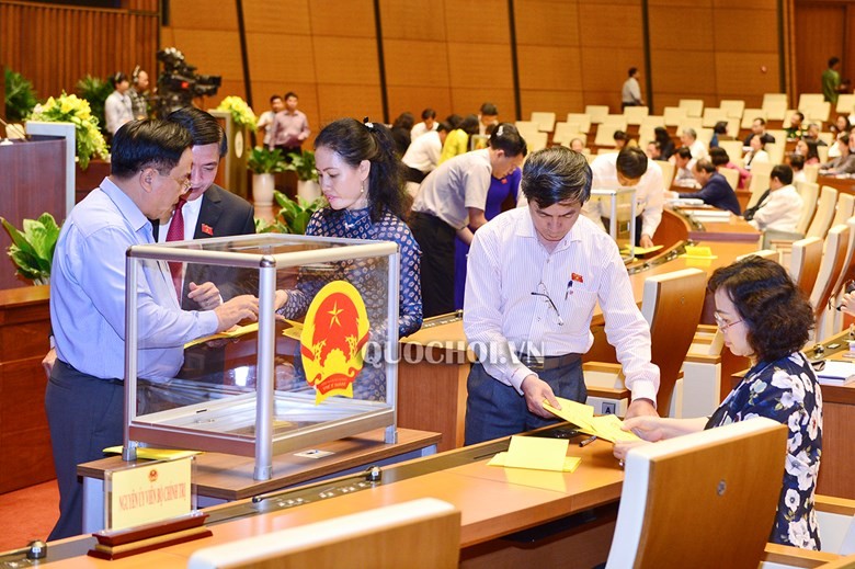 Các Đại biểu Quốc hội bỏ phiếu bầu Chủ tịch nước tại phiên họp sáng 23/10