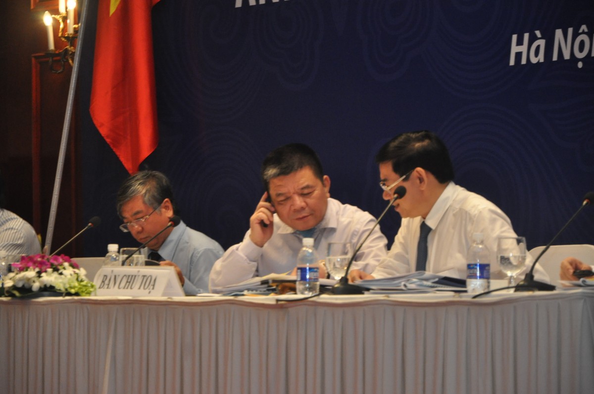 8h35: Giới thiệu và thông qua thành phần Ban Chủ tọa gồm có 5 người với ông Trần Bắc Hà, Chủ tịch HĐQT BIDV được bầu làm Chủ tọa