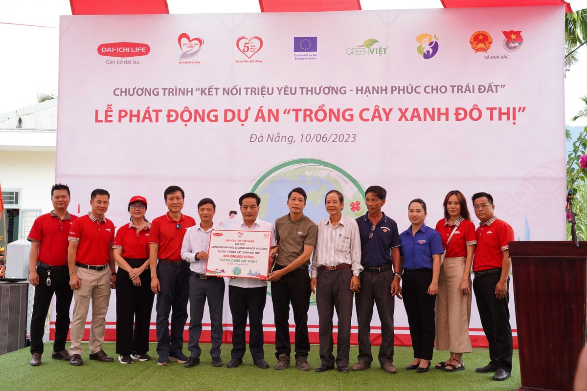 Nằm trong chuỗi các hoạt động và sự kiện hướng đến chào mừng mốc son phục vụ hơn 5 triệu khách hàng và cam kết tăng trưởng xanh bền vững năm 2023, đồng thời hưởng ứng cam kết ứng phó với biến đổi khí hậu trên toàn cầu của Tập đoàn Dai-ichi Life, hôm nay, ngày 10/6/2023, Công ty Bảo hiểm Nhân thọ Dai-ichi Việt Nam (Dai-ichi Life Việt Nam) đã phối hợp với Trung tâm Bảo tồn đa dạng sinh học Nước Việt Xanh (GreenViet) triển khai chương trình “Kết nối Triệu Yêu Thương – Hạnh phúc cho Trái đất” với lễ phát động Dự án “Trồng cây xanh đô thị”- trồng 2.600 cây xanh (Giáng hương) trị giá 400 triệu đồng tại xã Hòa Bắc và Hòa Khương, huyện Hòa Vang, TP. Đà Nẵng.
