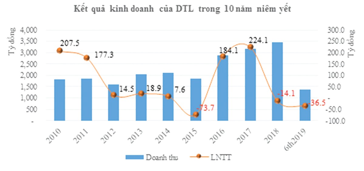 Trong nửa đầu năm 2018, tình hình kinh doanh của DTL vẫn lạc quan với 1.524 tỷ đồng doanh thu và 59,7 tỷ đồng lãi trước thuế. Tuy nhiên, những khó khăn chồng chất trong nửa cuối năm, nhất là trong quý IV/2018, đã xóa sạch thành quả thu được và khiến cả năm lỗ 14,1 tỷ đồng.