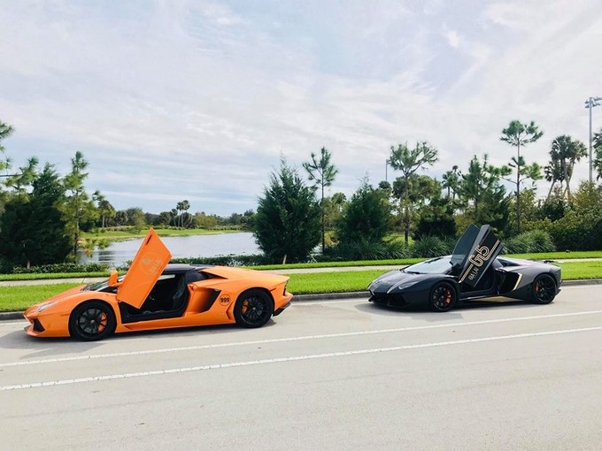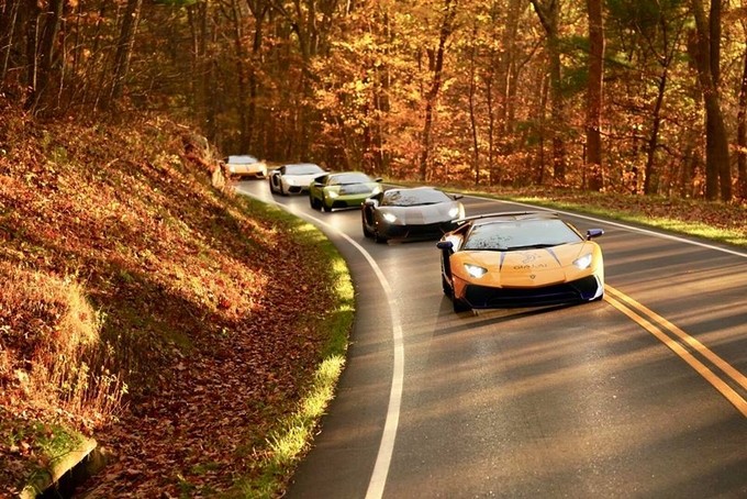 Đoàn xe gồm nhiều mẫu Lamborghini, trong đó chủ yếu là dòng Aventador với nhiều phiên bản khác nhau