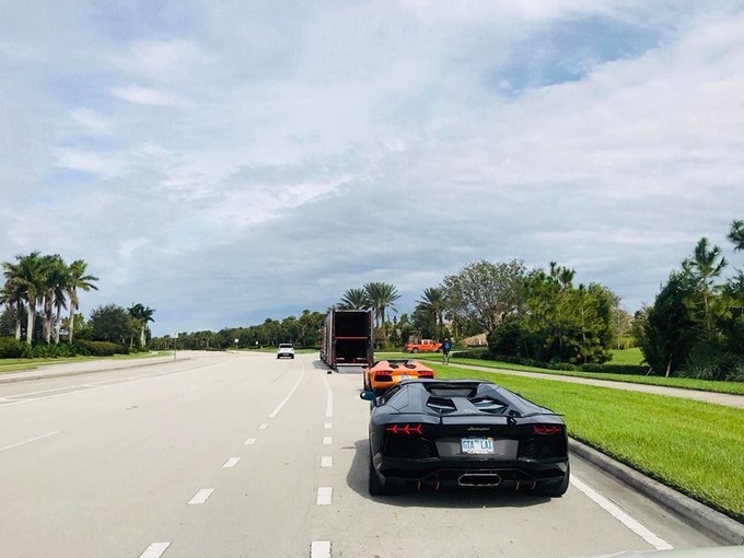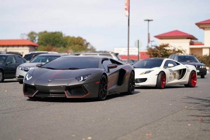 Một chiếc Aventador màu đen khác với siêu xe McLaren phía sau.