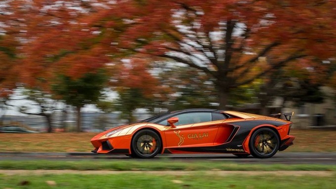 Các mẫu Aventador gồm từ bản tiêu chuẩn, mui trần đến phiên bản đặc biệt. Siêu xe được trang trí bắt mắt và mang hình bản đồ Việt Nam.