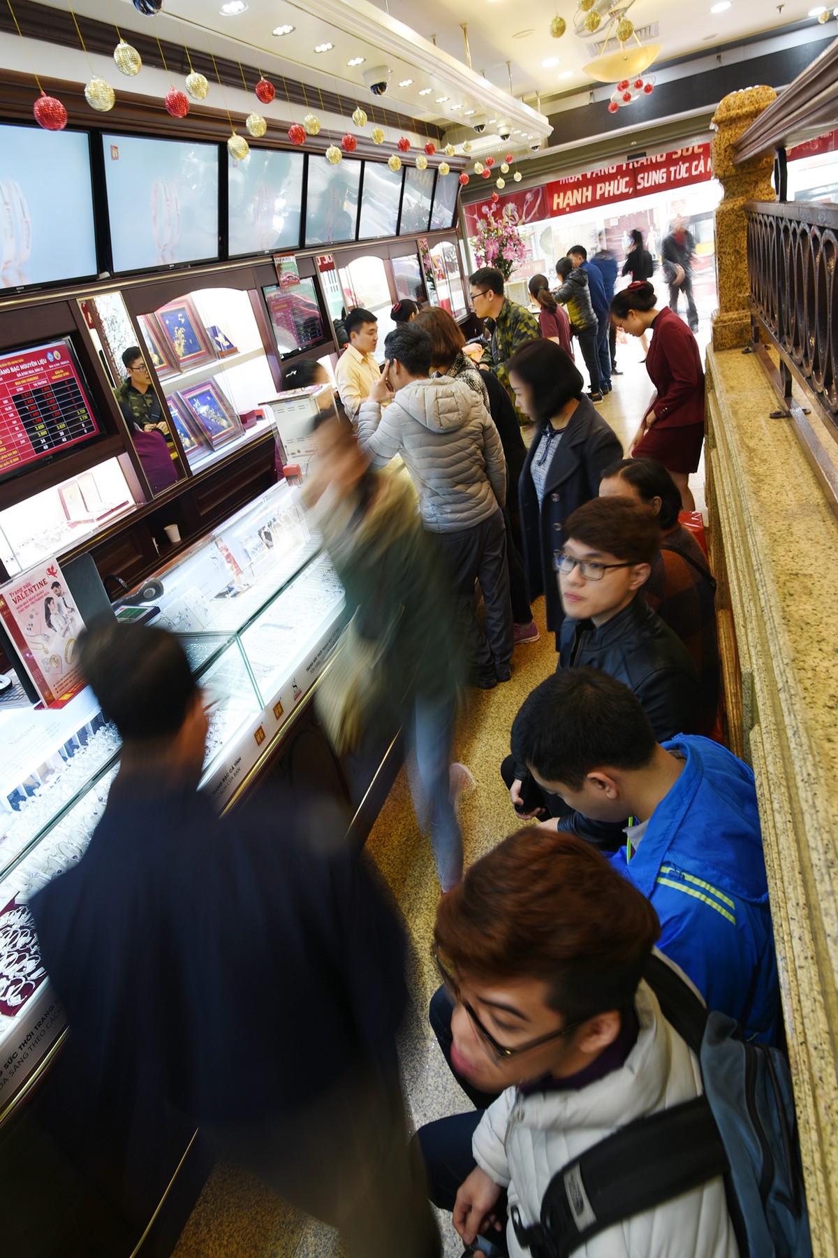 Dòng khách hàng xếp hàng chờ đợi đến lượt mua vàng.