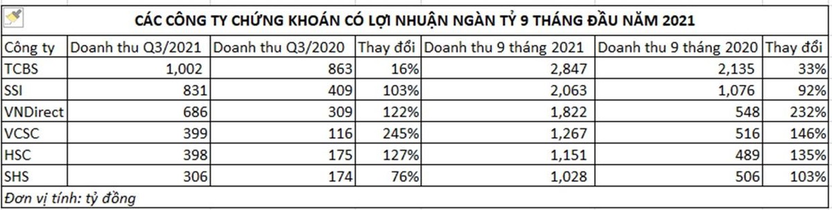 Thống kê từ báo cáo tài chính 9 tháng đầu năm của các công ty chứng khoán cho thấy, đã có 6 công ty đạt mức lợi nhuận trước thuế trên 1.000 tỷ đồng trong 3 quý đầu năm nay.
