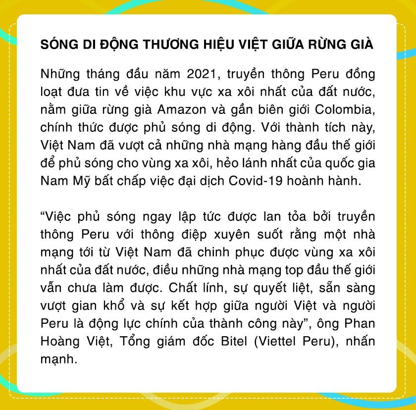 Peru là một thị trường đặc biệt của Viettel. Đây là đất nước có nền kinh tế phát triển hơn so với Việt Nam.