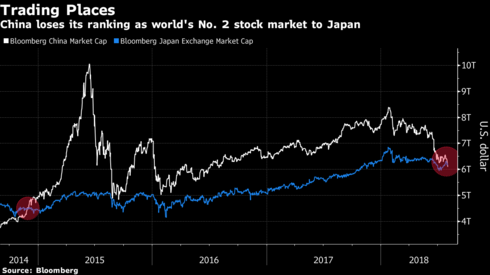 “Để tuột mất thứ hạng này vào tay Nhật Bản là thiệt hại do cuộc chiến thương mại gây ra. Chỉ số vốn chủ sở hữu của thị trường Nhật Bản đang ổn định hơn trong khi vốn hóa thị trường của Trung Quốc đã giảm mạnh trong năm nay”, Banny Lam, người đứng đầu bộ phận nghiên cứu tại Tập đoàn Đầu tư Quốc tế CEB tại Hong Kong cho biết.