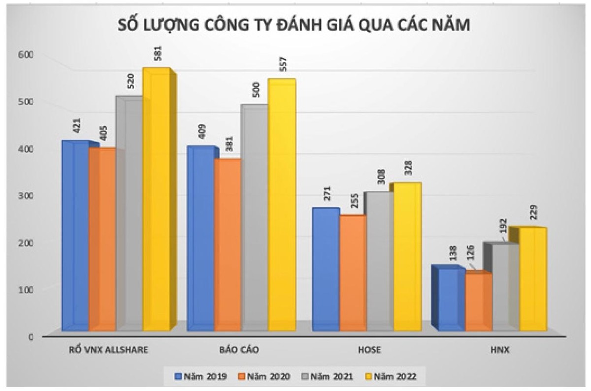 Trong năm 2022, số doanh nghiệp được đánh giá là 557, tăng 57 công ty (+11%) so với năm 2021.