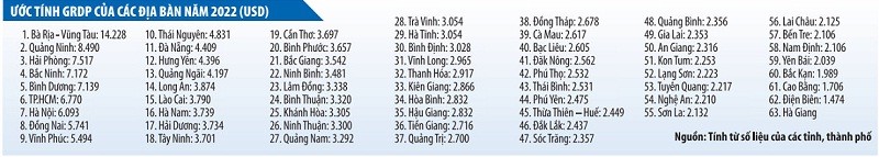 Nhóm trung bình cao có mức từ 3 tỷ USD đến dưới 4 tỷ USD, gồm 17 tỉnh, thành phố đứng từ thứ 14 đến 30.