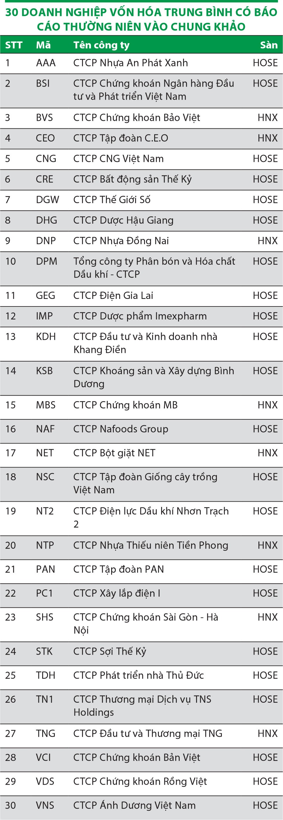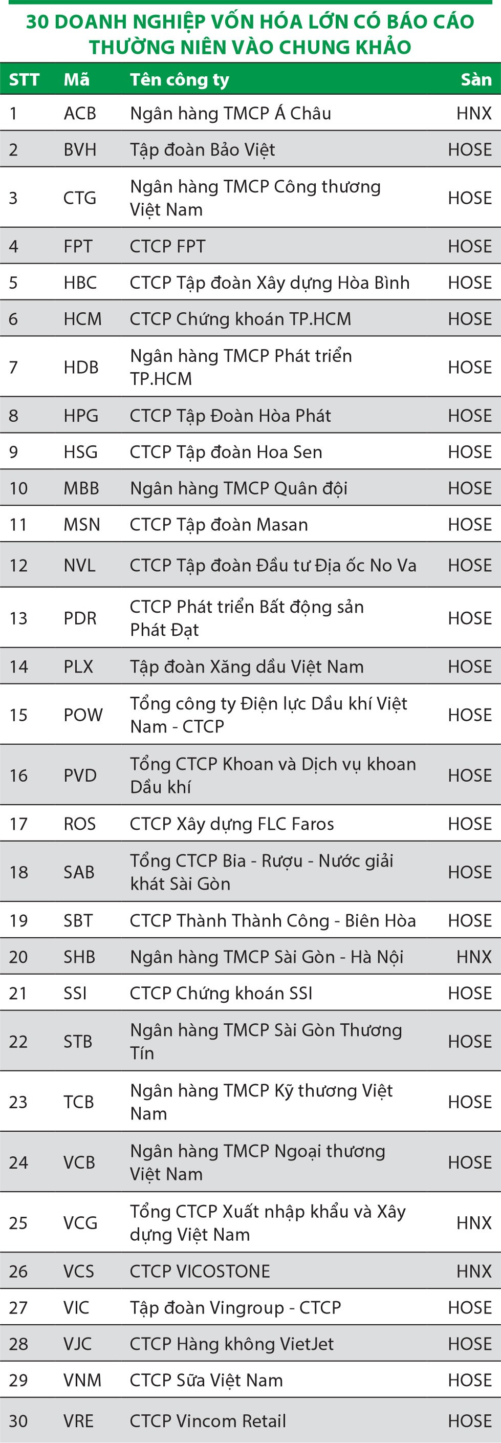 * Danh sách doanh nghiệp xếp theo thứ tự ABC của mã chứng khoán, không phải thứ tự xếp hạng