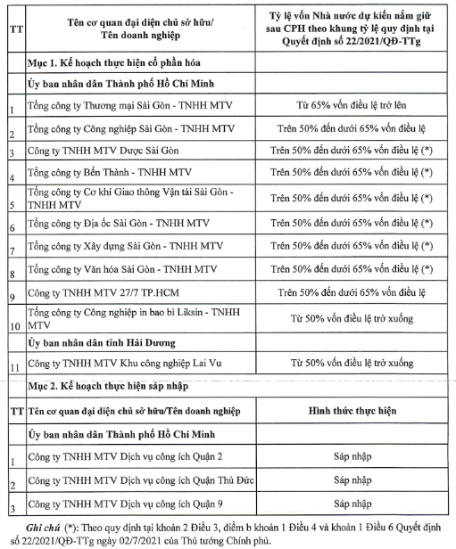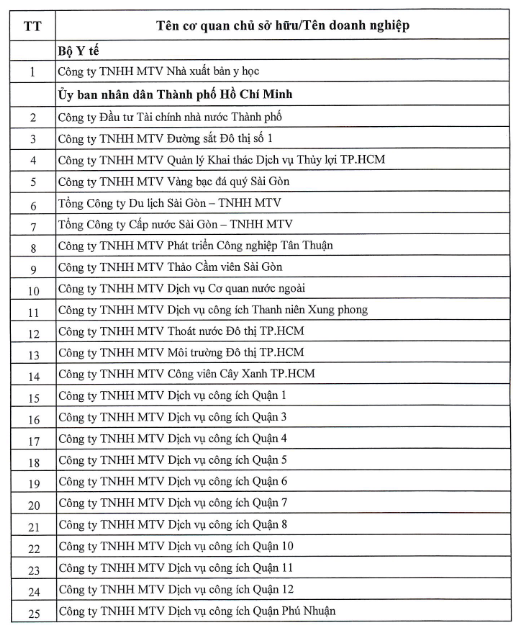 Cụ thể, phê duyệt Kế hoạch sắp xếp lại doanh nghiệp nhà nước, doanh nghiệp có vốn nhà nước trực thuộc Bộ Y tế, UBND Thành phố Hồ Chí Minh và UBND tỉnh Hải Dương đến hết năm 2025 theo các hình thức: Duy trì công ty trách nhiệm hữu hạn một thành viên; cổ phần hóa, sáp nhập; chuyển nhượng một phần hoặc toàn bộ vốn nhà nước (thoái vốn), gồm các Phụ lục sau: