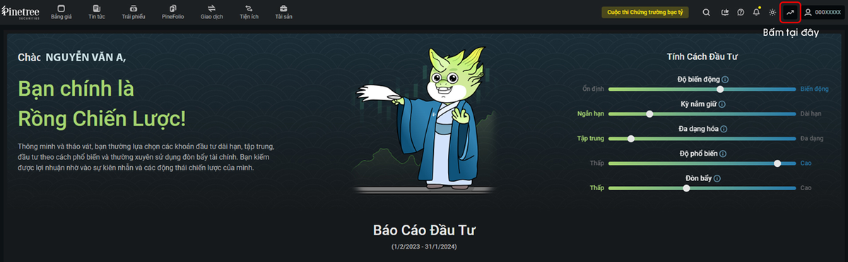 Tính năng này được xây dựng trên ứng dụng AlphaTrading và WebTrading của Pinetree thông qua việc cá nhân hóa theo lịch sử giao dịch của Nhà đầu tư. Với tính năng này, Nhà đầu tư có thể nhìn lại năm 2023 qua một báo cáo đầu tư chi tiết nhưng thú vị, đặc sắc và chưa từng xuất hiện trên thị trường.
