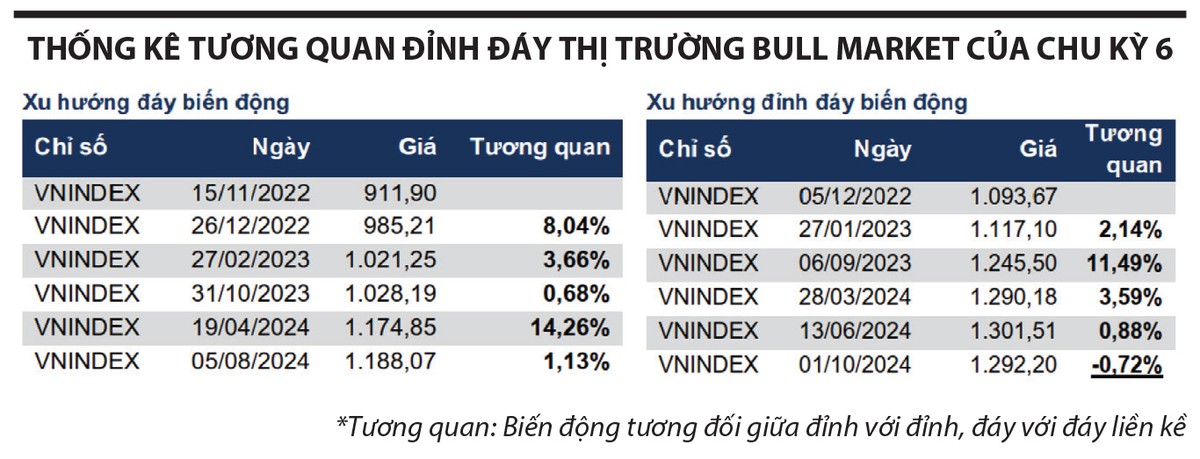 Đặc điểm này có sự tương đồng với giai đoạn năm 2015 và 2018, khi VN-Index có sự chuyển tiếp từ giai đoạn Late Bull Market (giai đoạn cuối của pha tăng giá) sang thị trường Bear Market (giảm giá).