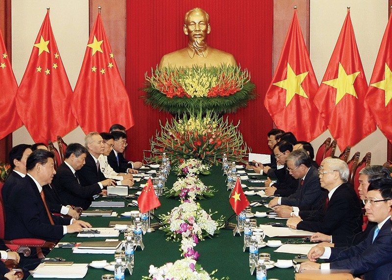 Tổng Bí thư Nguyễn Phú Trọng hội đàm với Tổng Bí thư, Chủ tịch nước Cộng hòa Nhân dân Trung Hoa Tập Cận Bình trong chuyến thăm cấp Nhà nước tới Việt Nam tháng 11/2015. Cùng với chuyến thăm Trung Quốc trước đó của Tổng Bí thư Nguyễn Phú Trọng (tháng 4/2015), chuyến thăm của ông Tập Cận Bình diễn ra trong bối cảnh quan hệ Việt Nam - Trung Quốc đang duy trì xu thế phát triển tích cực, đồng thời hai nước cũng đang kỷ niệm 65 năm thiết lập quan hệ ngoại giao.
