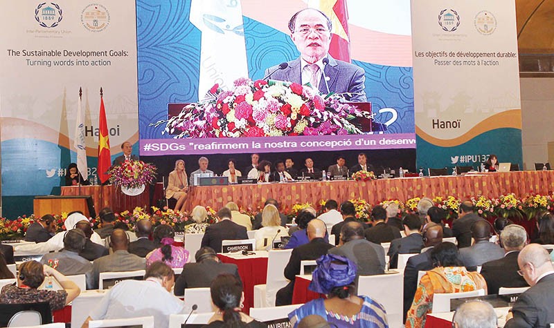 Tháng 3/2015, Việt Nam đã tổ chức thành công Đại hội đồng Liên minh Nghị viện thế giới lần thứ 132 (IPU-132) tại Thủ đô Hà Nội. Với nội dung Chương trình nghị sự tập trung vào chủ đề: “Những mục tiêu phát triển bền vững: Biến lời nói thành hành động”, IPU 132 đã tập trung thảo luận để chuẩn bị thông qua một Chương trình nghị sự về phát triển cho giai đoạn sau 2015. Đặc biệt, Tuyên bố Hà Nội - văn kiện quan trọng nhất của Đại hội đồng được thông qua lần này mang ý nghĩa lớn lao và ghi dấu ấn của Quốc hội Việt Nam bởi được chính Quốc hội Việt Nam đề xuất. Đây sẽ là di sản lớn, thể hiện sự đóng góp nổi bật của Việt Nam đối với cộng đồng thế giới.