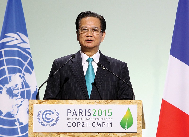 Với nỗ lực cùng cộng đồng quốc tế ứng phó với biến đổi khí hậu, trong hai ngày 30/11 và 1/12/2015, Thủ tướng Chính phủ Nguyễn Tấn Dũng đã cùng gần 150 nguyên thủ quốc gia khác tham dự Hội nghị lần thứ 21 Công ước khung của Liên hợp quốc về biến đổi khí hậu (COP-21) tại Paris (Pháp). Tại Hội nghị này, Thủ tướng Nguyễn Tấn Dũng đã có bài phát biểu quan trọng tại Phiên họp Cấp cao COP21, nêu bật thông điệp Việt Nam chung tay cùng các đối tác quốc tế ứng phó với các thách thức của biến đổi khí hậu.