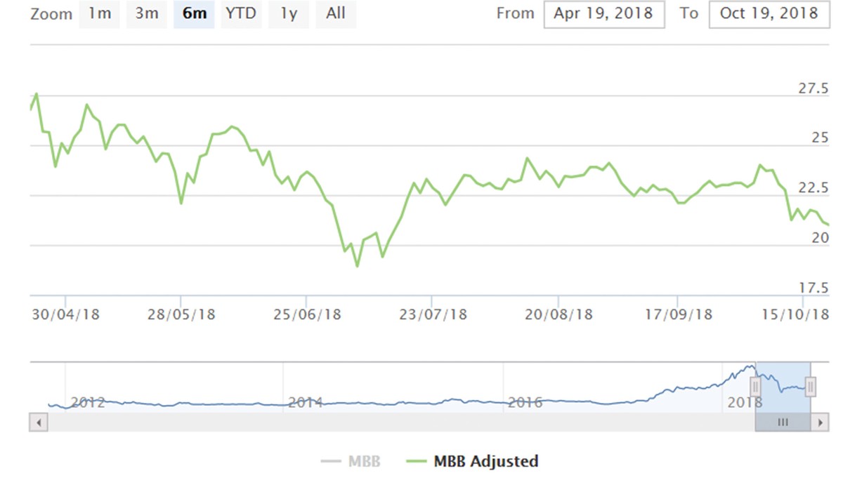 Diễn biến giá cổ phiếu MBB trong 1 năm qua.