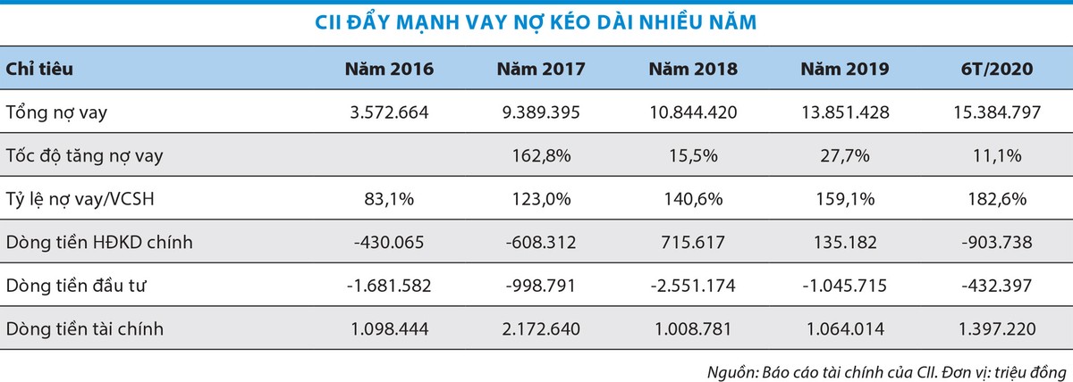 Chính vì huy động vốn liên tục như vậy trong nhiều năm, áp lực đáo nợ của CII ngày một gia tăng. Số nợ vay đáo hạn trong vòng 1 năm tới (tính từ thời điểm cuối tháng 6/2020) của CII lên tới 2.590,1 tỷ đồng. Đây là các khoản vay trái phiếu, ngân hàng thương mại mà doanh nghiệp đã huy động vốn nhiều năm về trước.