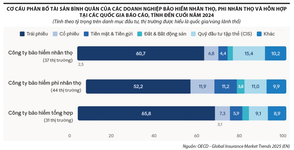 Ở cấp độ hệ thống, các chuẩn mực quốc tế cũng củng cố cách tiếp cận này. Hiệp hội Các cơ quan giám sát bảo hiểm quốc tế (IAIS) nhấn mạnh, quản trị rủi ro trong doanh nghiệp bảo hiểm phải bao trùm toàn bộ danh mục đầu tư, bao gồm rủi ro thị trường, rủi ro tín dụng, rủi ro thanh khoản và đặc biệt là quản lý tài sản - nợ phải trả (Asset-Liability Management - ALM). Trong khi đó, OECD chỉ ra rằng, trái phiếu và các tài sản thu nhập cố định vẫn là nền tảng của danh mục bảo hiểm toàn cầu, không phải vì thiếu lựa chọn, mà vì đây là loại tài sản phù hợp nhất với yêu cầu ổn định dòng tiền và kiểm soát biến động.