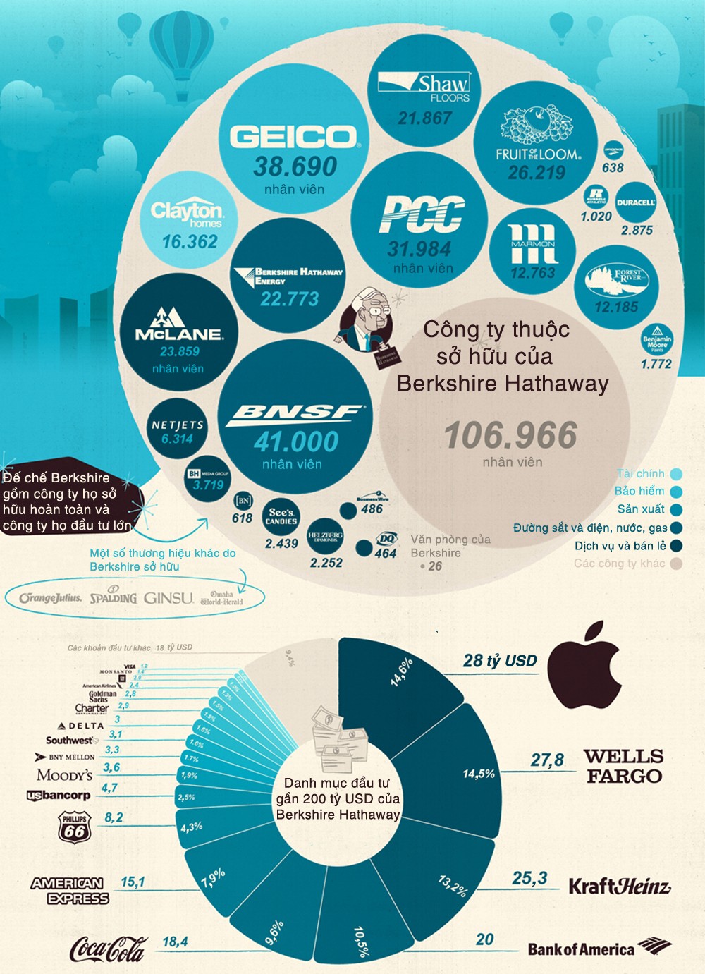Theo Vnexpress Tin liên quan Warren Buffett bình tĩnh hơn để chờ cơ hội M&A lớn 28/02/2018 09:44 Warren Buffett ngày càng chuộng Apple 04/05/2018 14:20 Warren Buffett: Giàu gấp đôi cũng không giúp bạn hạnh phúc hơn 15/04/2018 09:15 Warren Buffett có thể mua một hãng hàng không 28/02/2018 06:59 Từ khóa Warren Buffett Berkshire Hathaway đầu tư tỷ phú