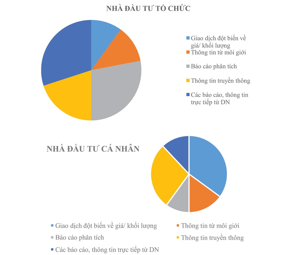 Trong khi đó, với các nhà đầu tư tổ chức, báo cáo phân tích các công ty chứng khoán và thông tin trực tiếp từ doanh nghiệp (bao gồm thông tin định như báo cáo tài chính, báo cáo thường niên, các cuộc họp đại hội đồng cổ đông, trao đổi trực tiếp với doanh nghiệp…) lại là những thông tin đặc biệt quan trọng.