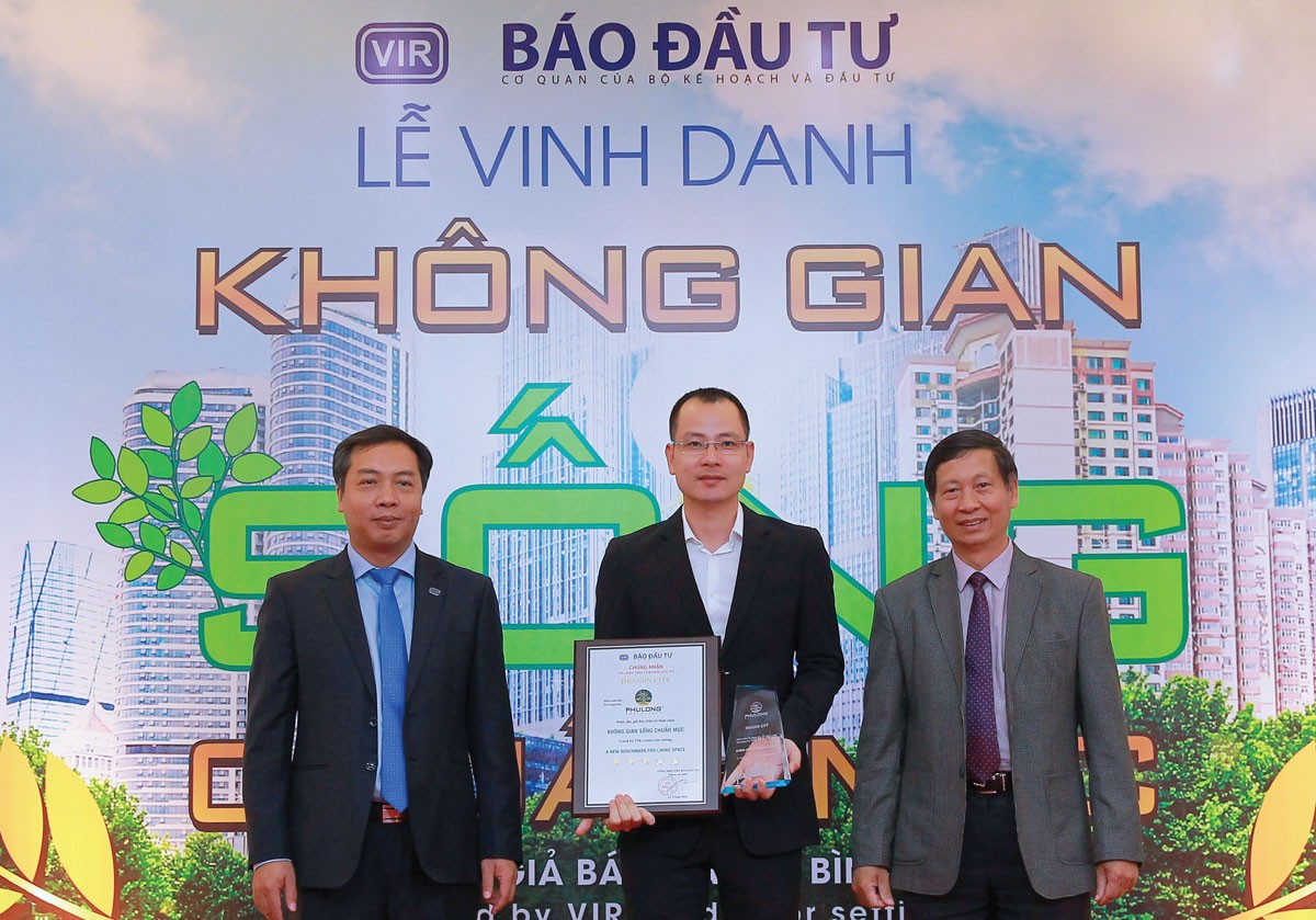Ông Vũ Hoài Nam, Phó tổng giám đốc Công ty cổ phần Địa ốc Phú Long nhận Cúp vinh danh dự án Dragon City