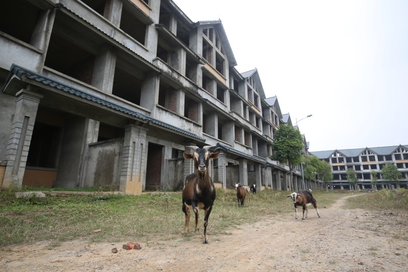 Cả trăm căn biệt thự liền kề mới chỉ hoàn thiện phần thô, chưa có người ở. Tận dụng phần đất này, nhiều hộ dân ở các khu vực lân cận đã tiến hành chăn thả gia súc, kiếm thêm thu nhập
