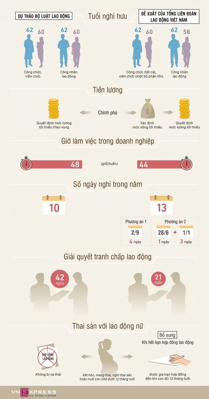 Tổng Liên đoàn Lao động Việt Nam Việt Nam đề xuất mới về tuổi hưu, giờ làm thêm, tiền lương 07/10/2019 17:35