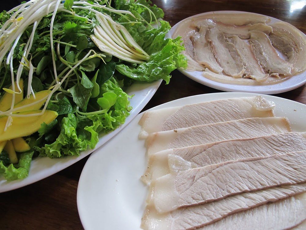Bánh tráng cuốn thịt heo: Là món ăn đứng top đầu những món nhất định phải thử khi đến Đà Nẵng, bánh tráng cuốn thịt heo được dùng với mắm nêm và nhiều loại rau ăn kèm rất hấp dẫn.