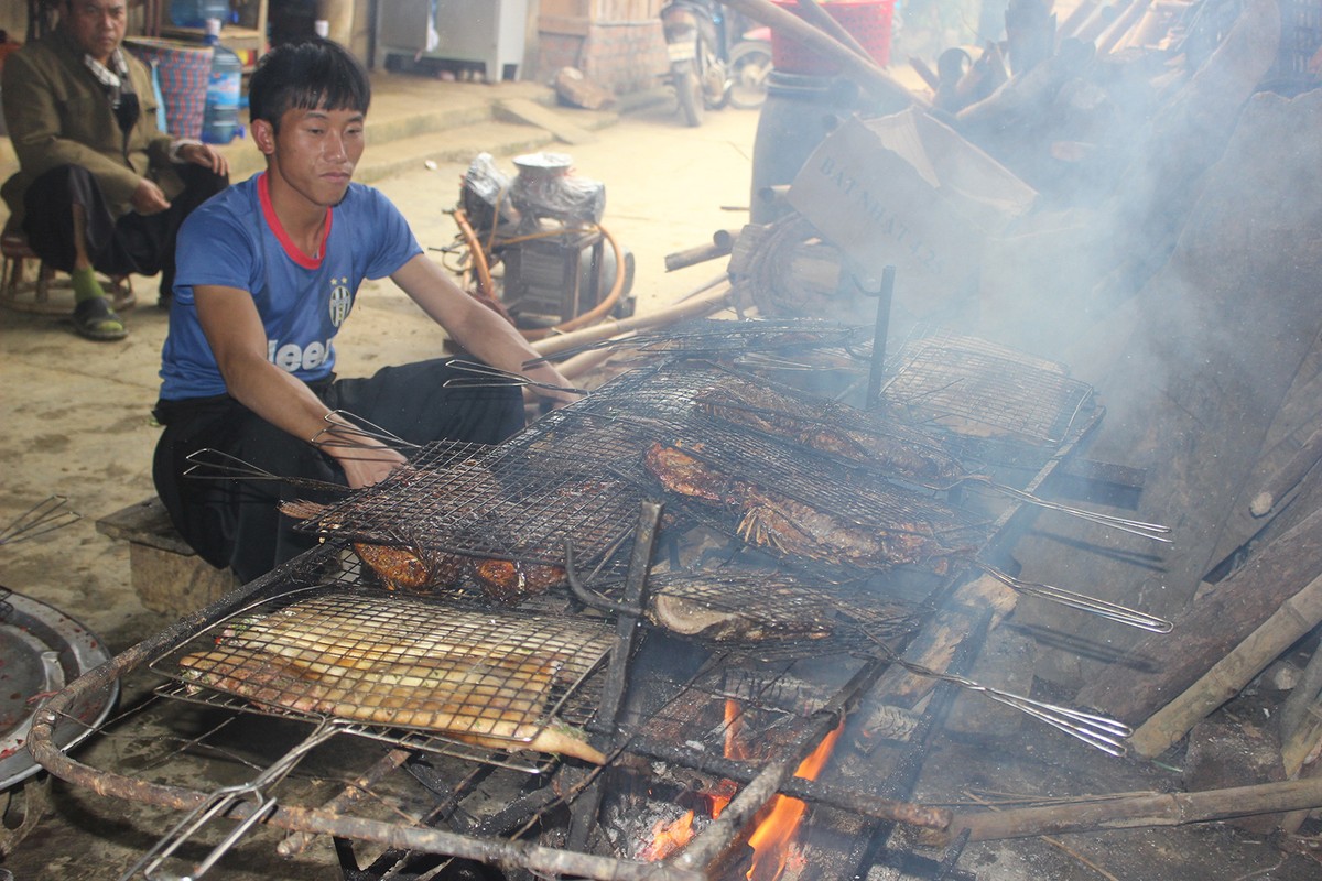Từ Hua Tạt ra tới vùng sông Đà còn khá xa, nhưng món cá trắm sông 2 - 3 kg, được nhồi gia vị vào từng khứa thịt đem hấp hoặc nướng vẫn rất phổ biến ở đây. Vị ngọt của cá lẫn vị bùi cay nồng của mắc khén khiến thực khách là tôi đây cứ muốn “tranh phần” ăn mãi cho đến hết.