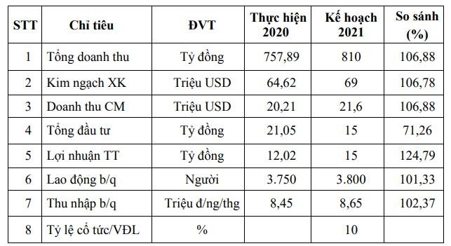 Để đạt được những chỉ tiêu này, Ban lãnh đạo Công ty đã đưa ra các biện pháp chi tiết. Cụ thể, tiếp tục duy trì các đơn hàng truyền thống và tìm kiếm, lựa chọn khách hàng mới để duy trì sản xuất, nâng cao giá trị thương mại và hiệu quả đầu tư nhất là đối với dòng sản phẩm veston khi các Hiệp định thương mại Viêt Nam – EU, Hiệp định đối tác kinh tế toàn diện khu vực (RCEP) vừa có hiệu lực.