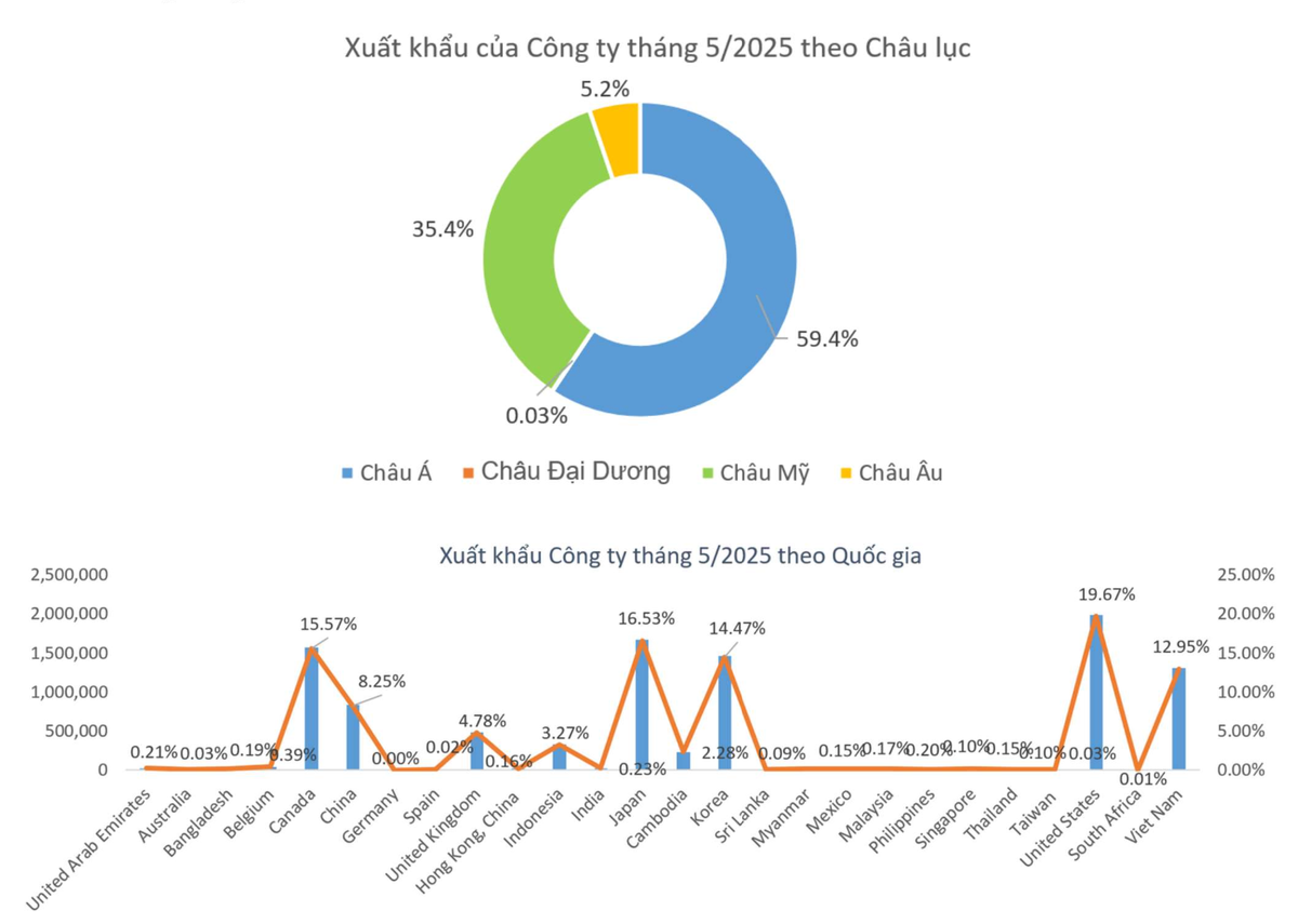 Lũy kế 5 tháng đầu năm 2025, doanh thu của Công ty đạt 1.607,5 tỷ đồng, tăng 7% so với cùng kỳ, hoàn thành khoảng 36% kế hoạch năm. Lợi nhuận sau thuế đạt 138,7 tỷ đồng, tăng 25% và hoàn thành xấp xỉ 50% kế hoạch năm.