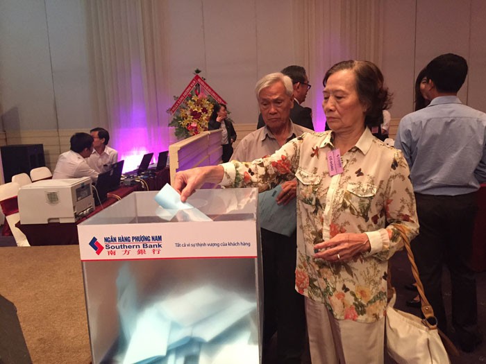 Kết thúc Đại hội, có tới 99,88% cổ đông tham dự bỏ phiếu thông qua phương án sáp nhập vào Sacombank. Sau kết quả kiểm phiếu được công bố, ông Trầm Bê, cố vấn cấp cao HĐQT SouthernBank, đồng thời là Phó chủ tịch thường trực HĐQT Sacombank tỏ ra rất vui mừng.