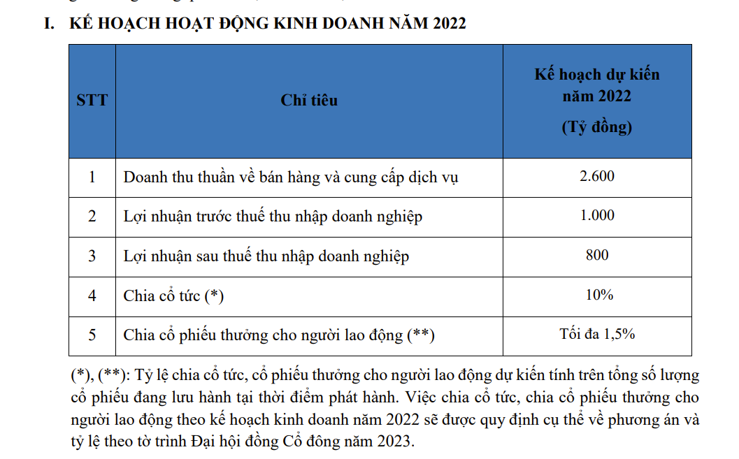 ĐHCĐ đã thông qua phương án chia cổ tức năm 2021 bằng cổ phiếu tỷ lệ 10% và phát hành cổ phiếu thưởng từ nguồn từ thặng dư vốn cổ phần tỷ lệ 29%. Như vậy, cổ đông tại ngày chốt danh sách sẽ nhận thêm cổ tức và cổ phiếu thưởng tỷ lệ 39%.