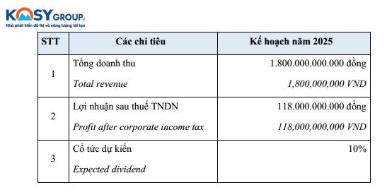 Mục tiêu năm 2025, Kosy dự kiến doanh thu 1.800 tỷ đồng, lợi nhuận sau thuế 118 tỷ đồng, cổ tức dự kiến chia ở mức 10%.