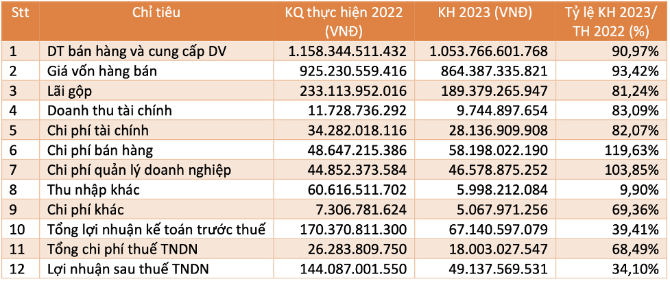Năm 2013, Công ty lên kế hoạch doanh thu hợp nhất đạt 1.054 tỷ đồng, lợi nhuận sau thuế đạt 49 tỷ đồng, lần lượt bằng 91% và 39,4% thực hiện năm trước.