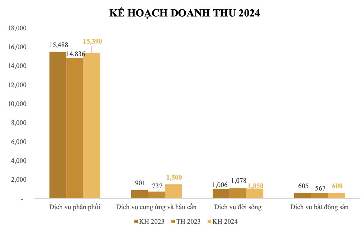 Lợi nhuận quý I giảm nhẹ, nhưng nhìn kế hoạch lợi nhuận theo kế hoạch, lĩnh vực dịch vụ phân phối và lĩnh vực dịch vụ cung ứng và hậu cần đều tăng trưởng mạnh so với 2023. Cơ sở nào để ban lãnh đạo tự tin 2 lĩnh vực trên tăng mạnh?
