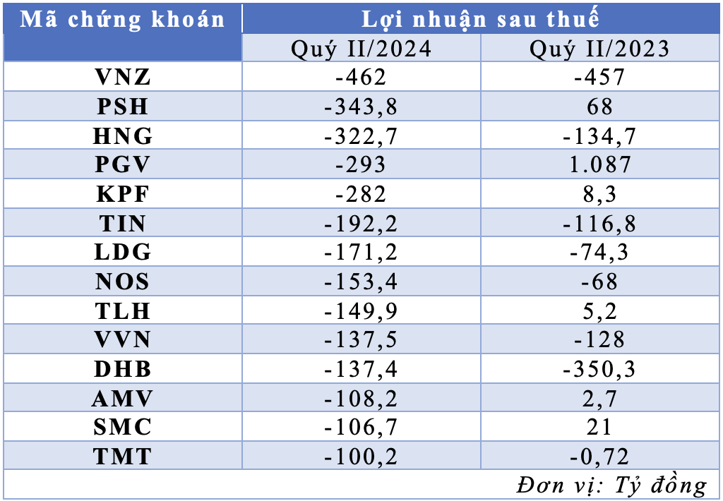Ngoài những cái tên điểm trên, trong danh sách các doanh nghiệp báo lỗ trên trăm tỷ quý II vẫn còn một vài doanh nghiệp như HNG, SMC, PVG, TIN, DHB, TMT, TLH, VVN, AMV...