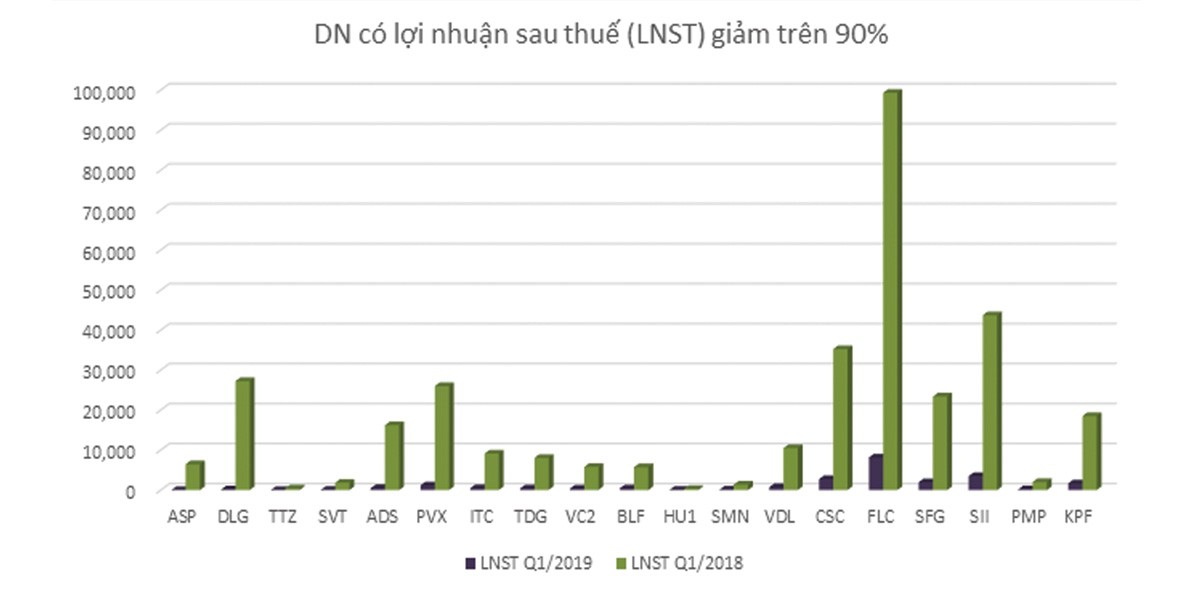 Trong danh sách DN giảm mạnh lợi nhuận, nhóm chứng khoán đóng góp nhiều thành viên, trong đó có cả những DN nằm trong Top đầu về thị phần, nguyên nhân chính là do diễn biến và thanh khoản thị trường quý I/2019 sụt giảm mạnh so với cùng kỳ. Kết quả này đã được dự báo từ trước.