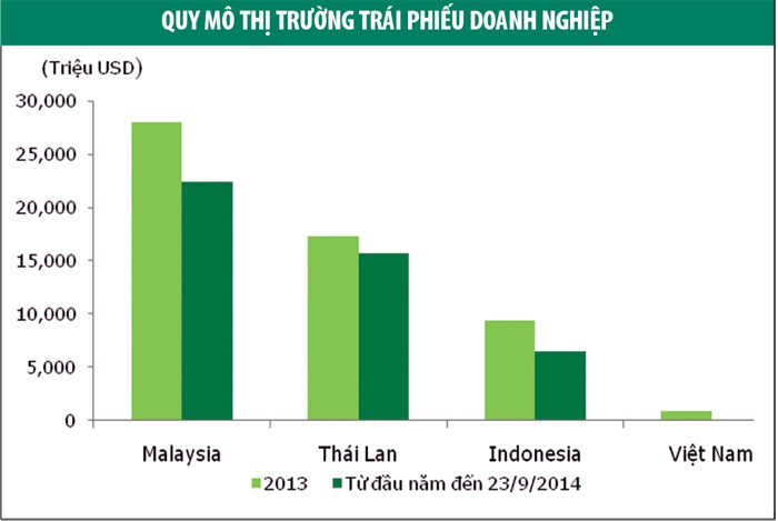 Tổng giá trị trái phiếu phát hành năm 2013 tại các nước này lần lượt đạt 28 tỷ USD, 17 tỷ USD và 9 tỷ USD tương ứng, so với 0,9 tỷ USD tại Việt Nam. Thị trường trái phiếu đã và đang là nguồn cung vốn chủ chốt và do đó là động lực chính cho phát triển kinh tế tại những nước này.